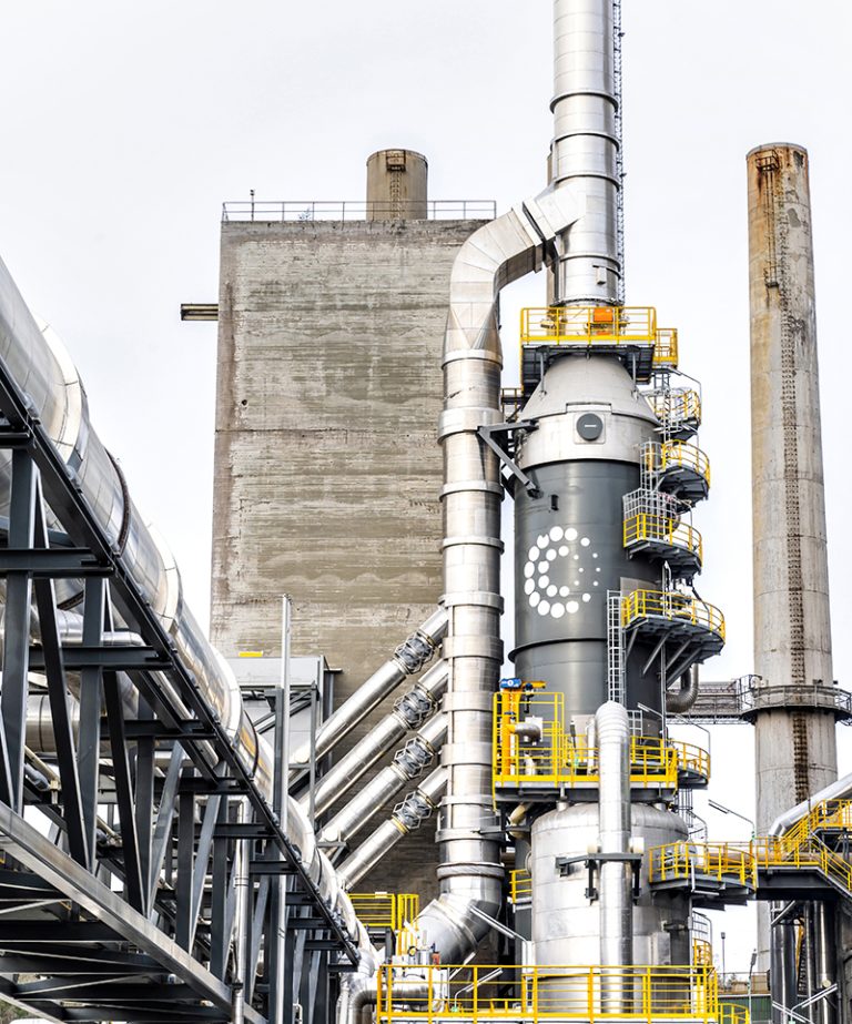 I Brevik fanges CO₂ fra røykgassen, – det er her CCS-anlegget er koblet på fabrikken.