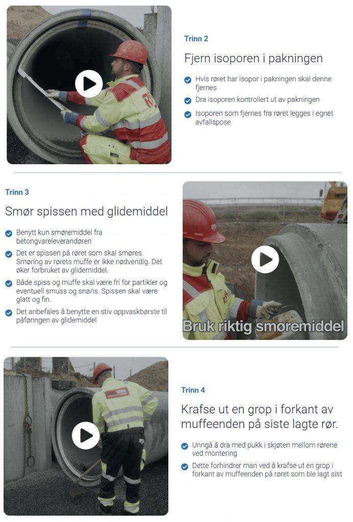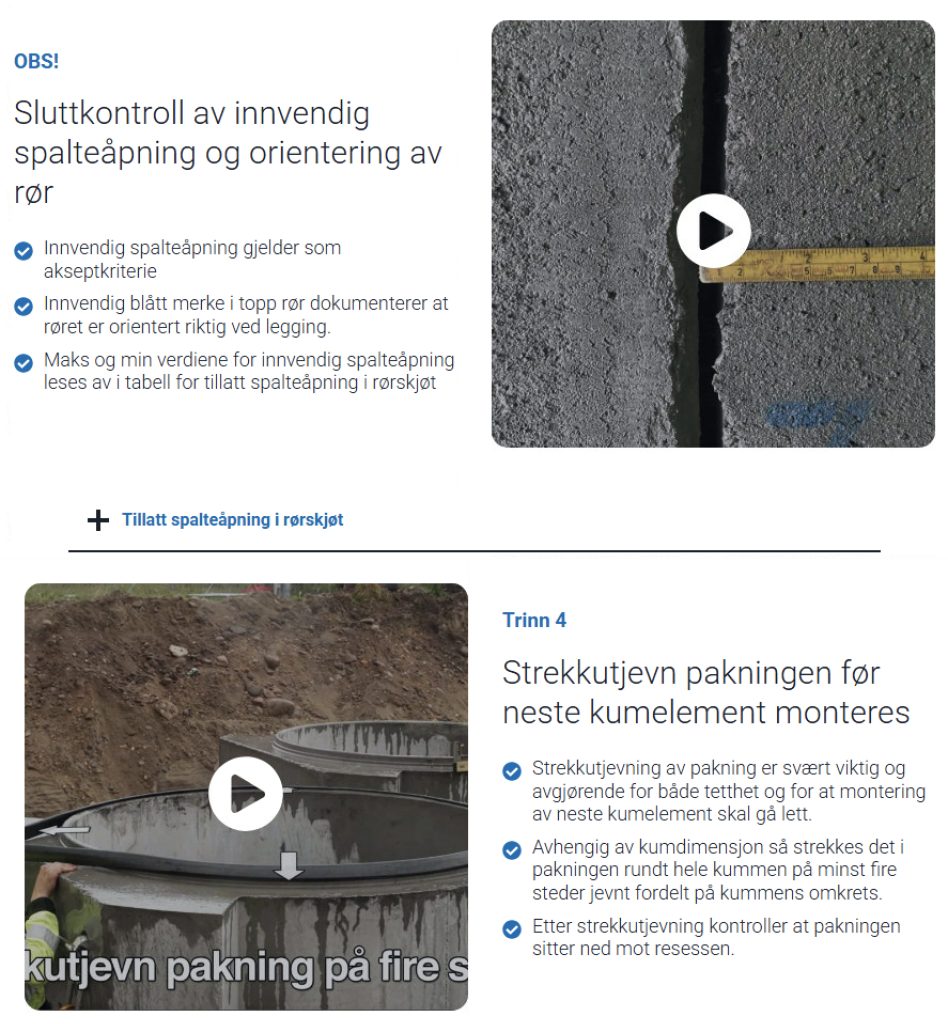 Man skal kunne se trinn for trinn alt fra hvilket utstyr man trenger, hva slags grøfteforberedelser man må gjøre, til montering og sluttkontroll. Da skal det være lettere for den uerfarne å se hvordan monteringen skal gjøres.