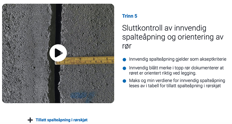 Den digitale leggeanvisningen er visualisert med bilder og videoer som trinn for trinn viser alt fra behov for utstyr, hvilke grøfteforberedelse som må gjøres, til montering og sluttkontroll.