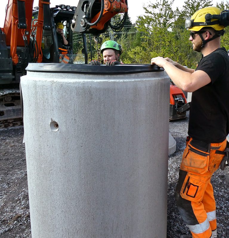 En særlig utfordring når man monterer kummer, er å få til tette rørgjennomføringer. Rune Moberg i Østfold Betongprodukter forteller at de har god dialog med pakningsleverandøren Trelleborg.