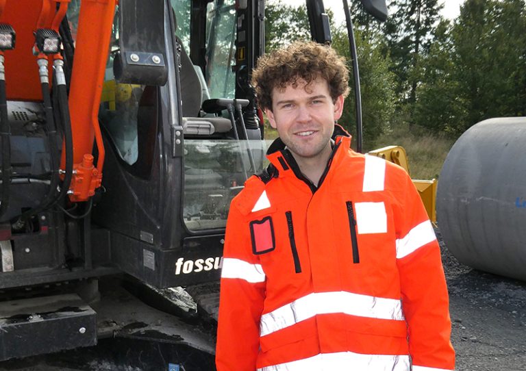 ‒ Det kuleste her er at vi tar i bruk Heidelbergs teknologi som er karbonfangst og lagring. Dette er en verdensledende teknologi utviklet i Norge, og vi er først i verden til å ta den i bruk. Det er enormt stort, sier Eirik Severin Bråten, VA-ingeniør og digitaliseringsleder i Basal AS.